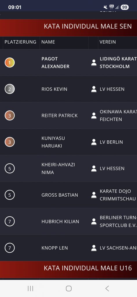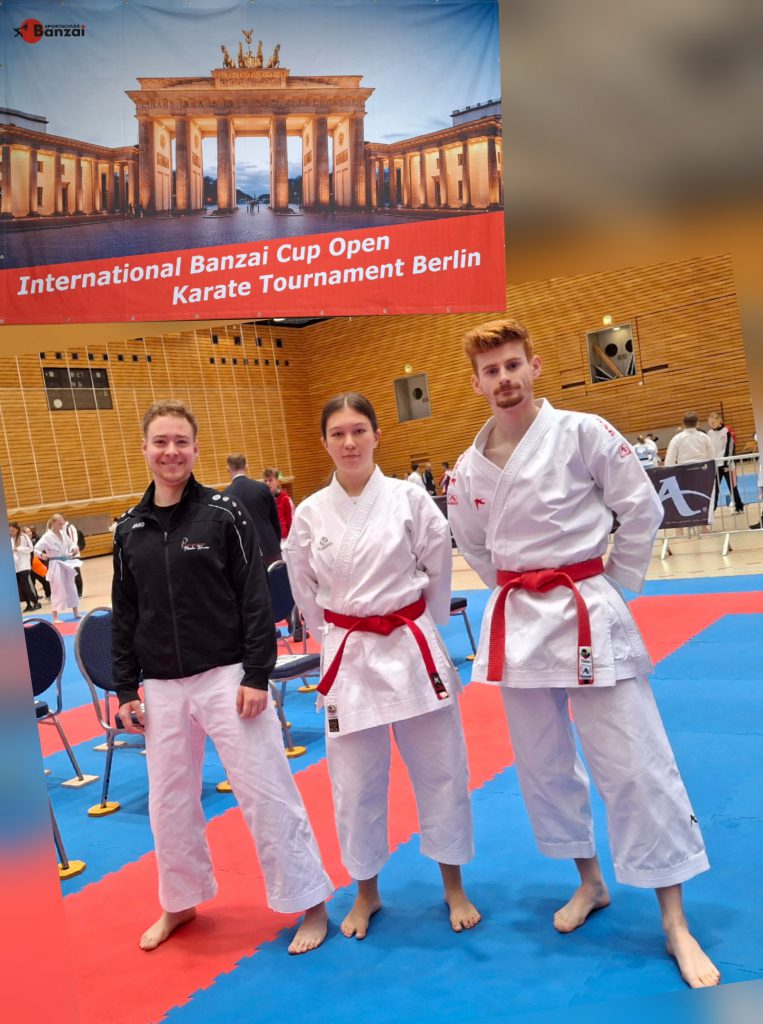 Zu Beginn der neuen Wettkampfsaison konnte Bastian mit Platz 5 beim internationalen Banzai Cup in Berlin einen Achtungserfolg verbuchen. Zur 20. Auflage dieses Traditionsturnieres waren 22 Nationen mit 1010 Startern vertreten, darunter neben zahlreichen Nationalmannschaften auch ein Großteil der deutschen Elite. Aus unserem Verein starteten Emma, Bastian und Martin jeweils im Einzel, durch verletzungsbedingten Ausfall von Theresa und Marlon ging das Herren Team leider nicht an den Start. Bei jeweils sehr guten Einzelleistungen, allerdings etwas Pech in der Auslosung konnten Emma und Martin leider nicht in den Kampf um Medaillen eingreifen, Bastian kämpfte sich dagegen ins kleine Finale durch, wo gegen Kuniyasu Haruaki aus dem deutschen Nationalkader trotz sehr guter Leistung Endstation war.