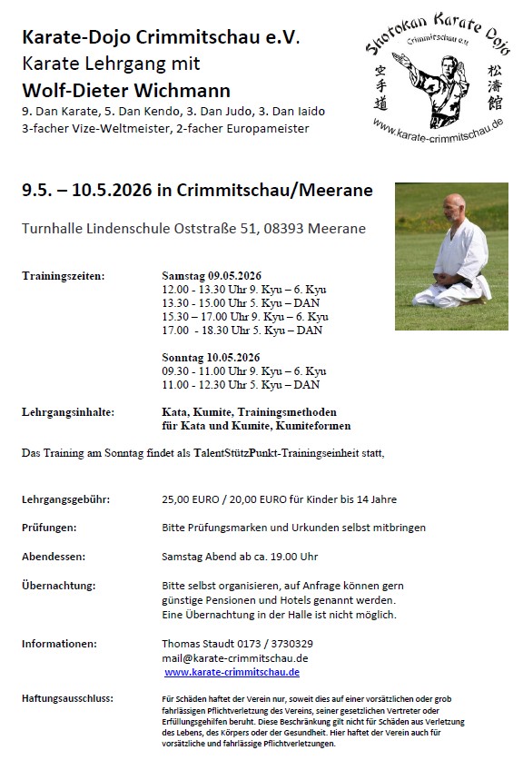 In Meerane findet weiterhin Montags 18:30 – 20:00 freies (!) Karate Training statt, ebenso das reguläre Kenjutsu Training.